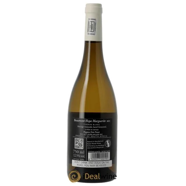 Rendons-nous en Afrique du Sud, à la découverte de ce domaine familial qui se situe au sein de la région du Cap Occidental (à l’est de Stellenbosch) et qui a vu le jour au milieu des années 1970, sous l’impulsion de Jayne et de Raoul Beaumont. Aujourd’hui, c’est Sebastian Beaumont qui est à la tête de la propriété et qui produit ce vin blanc réalisé à partir de chenin blanc cultivé au sein du vignoble « Hope Marguerite ». Cette cuvée est produite depuis le millésime 1997 et est réalisée à l’aide de vieilles vignes plantées à l’origine de la propriété. Pour réaliser cette cuvée, la famille Beaumont a laissé les levures indigènes enclencher les fermentations qui ont lieu en barriques de chêne français. Intervenant le moins possible, elle laisse la fermentation malolactique se faire. Afin de gagner en caractère, le vin fait l’objet d’un élevage sur ses lies, pendant dix mois, et ces dernières sont remises en suspension à l’aide de bâtonnages. Vous ne serez pas surpris d’apprendre que ce vin présente une savoureuse richesse aromatique ainsi qu’une texture ample et dense. Vin de gastronomie par excellence, il se marie parfaitement à une viande blanche, des mets crémés ou un poisson gras.