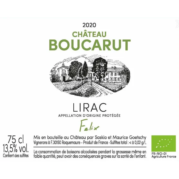 Le vin Château Boucarut est un vin Blanc produit dans la région Vallée du Rhône en France, par Château Boucarut. Ce millésime 2020 est issu de l’appellation Lirac. Il est vendu sur Twil au prix de 15,00 € la bouteille de 75cl, dès le minimum de 6 bouteille(s). Son producteur, Château Boucarut, produit 35 vin(s) disponible(s) à l’achat.