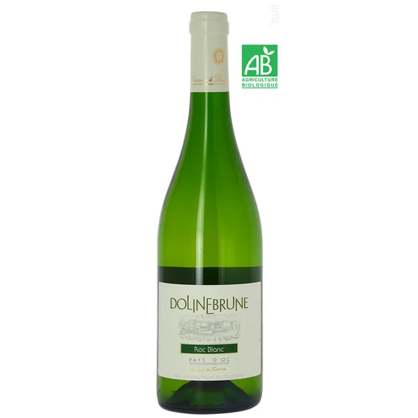 Dolinebrune Roc Blanc associe la générosité sirupeuse du viognier à la vivacité agrume du vermentino et à la souplesse du grenache.