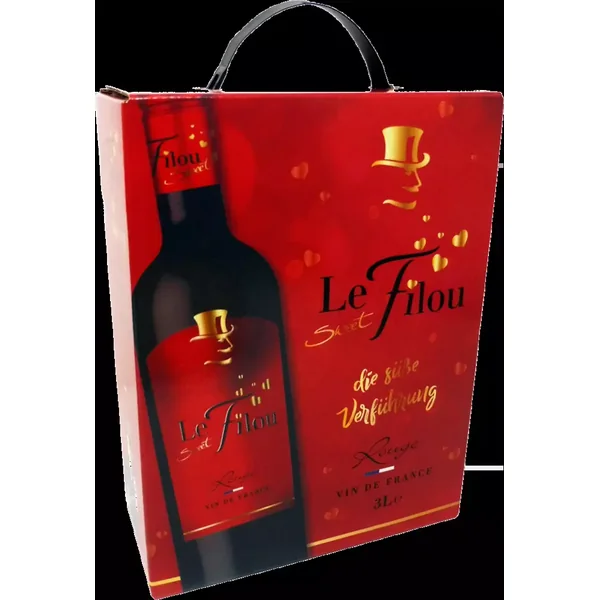 Le Sweet Filou Rouge 3 l Bag-in-Box, issu de la plume de Le Filou du Sud-Ouest, offre, dans le verre tournoyant, une couleur rubis brillante. Au nez, ce vin rouge Le Filou présente toute une palette de cassis, de cerises noires, de quetsches, de prunes et de myrtilles. Comme si cela n’était pas déjà impressionnant, l’élevage en cuve inox apporte encore des épices orientales, de la cannelle et du thé noir.