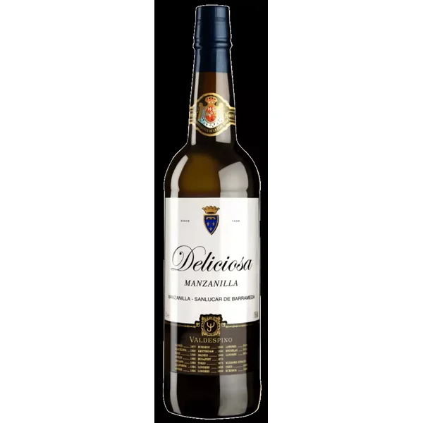 Le Manzanilla Deliciosa de Valdespino se révèle dans le verre d’un jaune paille clair et flatte le nez avec ses arômes délicats de miel et de noix.
