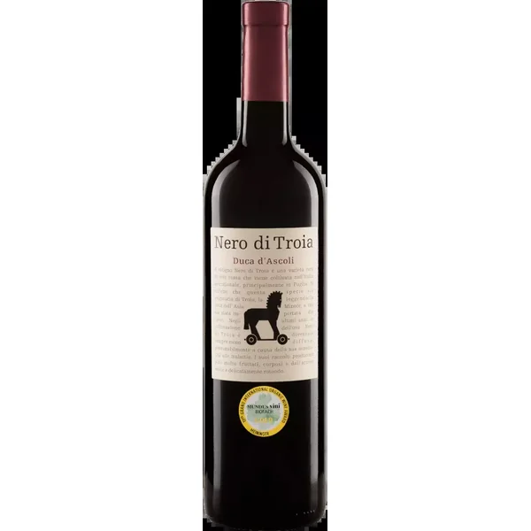 Le Nero Di Troia Duca D’Ascoli Puglia Igt d’Italie, bien équilibré, est un vin monocépage, vinifié en bio à partir du cépage Nero d’Avola. Après les vendanges, les raisins sont acheminés le plus rapidement possible vers la cave. Là, ils sont triés et délicatement foulés. La fermentation a ensuite lieu en cuves inox à température contrôlée. La fermentation est suivie d’un élevage sur lies fines pendant quelques mois, avant que le vin ne soit finalement soutiré. Après l’achèvement de l’élaboration, le Nero Di Troia Duca D’Ascoli Puglia Igt est soigneusement harmonisé.