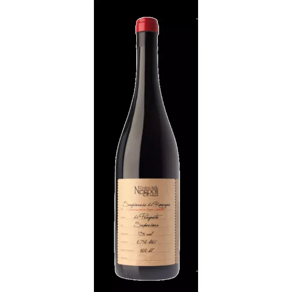 Le Nespoli Prugneto Sangiovese di Romagna Superior DOC de Poderi dal Nespoli se présente dans le verre dans une robe rouge rubis intense avec des arômes de violette, de cerise et de prune.