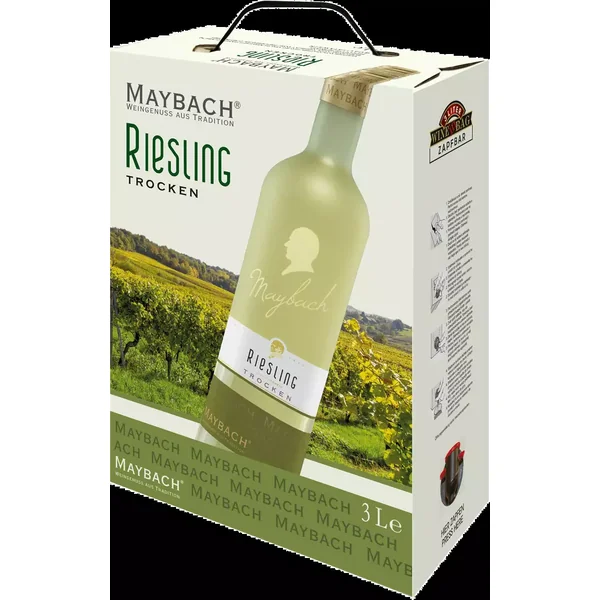 L’élégant Maybach Riesling 3,0 l Bag-In-Box de Rheinhessen est élaboré à partir de raisins issus du cépage Riesling. Après les vendanges, les raisins arrivent à la cave par la voie la plus rapide. Ils y sont sélectionnés et délicatement foulés. Vient ensuite la fermentation en cuve inox à température contrôlée. La fermentation est suivie d’une maturation de quelques mois sur lies fines, avant que le vin ne soit finalement soutiré. Une fois le vin terminé, le Maybach Riesling 3,0 l Bag-In-Box est délicatement harmonisé.