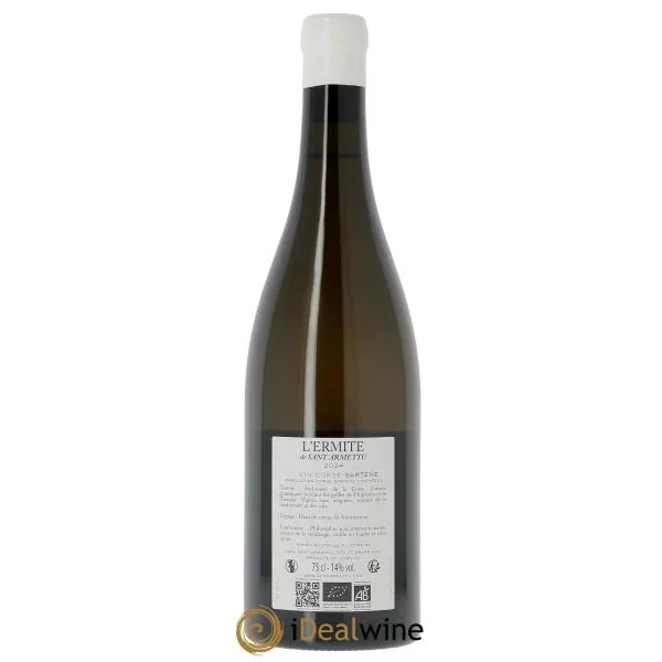 L’Ermite du domaine Sant’Armettu est une cuvée issue d’une sélection parcellaire sur les hauts coteaux de Tizzano, en Corse-du-Sud. Ce vin blanc est élaboré à partir de 100% de vermentinu, cépage emblématique de la région. Les vendanges sont manuelles, avec un tri minutieux à la vigne et en cave. Les raisins sont égrappés et la fermentation se fait en foudre avec des levures indigènes, sans intrants ni filtration, afin de respecter au maximum l’expression du terroir. L’élevage de 12 mois dans ces contenants permet de sublimer les arômes tout en conservant la pureté et la minéralité du cépage. À la dégustation, ce nectar se distingue par son équilibre parfait entre intensité, complexité et pureté. Le travail de vinification a été minutieusement pensé pour préserver la tension, offrant ainsi une expérience de dégustation raffinée où la minéralité se mêle à une belle fraîcheur. Cet élixir révèle toute la richesse et l’authenticité de son terroir, avec une élégance rare qui le rend idéal pour accompagner des plats fins et des mets délicats.