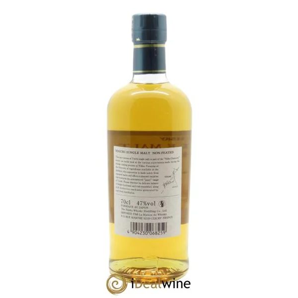 Située sur la côte de Hokkaido, l’île la plus septentrionale du Japon, Yoichi produit des whiskies à partir d’orge importé d’Ecosse. Et ce, selon les méthodes traditionnelles, telle que la chauffe au feu de charbon. Elle crée donc des breuvages au caractère tourbé qui rappellent les expressions nées sur l’Ile d’Islay. Avec ce single malt « non peated », sans tourbe, la distillerie propose une autre lecture du style Yoichi, où le malt et les notes fruitées sont sur le devant de la scène. Parée d’une robe ambrée, cette expression évoque au nez la banane, l’ananas, la pomme et le miel d’acacia, puis dévoile des notes épicées et herbacées. La bouche est vive, marquée d’abord par les agrumes, puis par des notes de vanille et de café. L’orge malté reprend le dessus en finale, bientôt rejoint par une touche de badiane et de fruits secs. A déguster pur ou avec des glaçons.